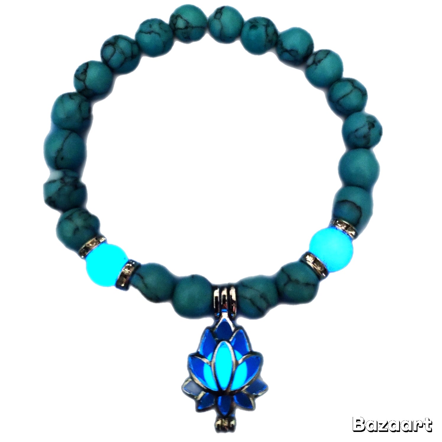 Design Style: Turquoise beads bracelet, yoga energy bracelet, glowing lotus flower bracelet, Glow in the dark jewelry.